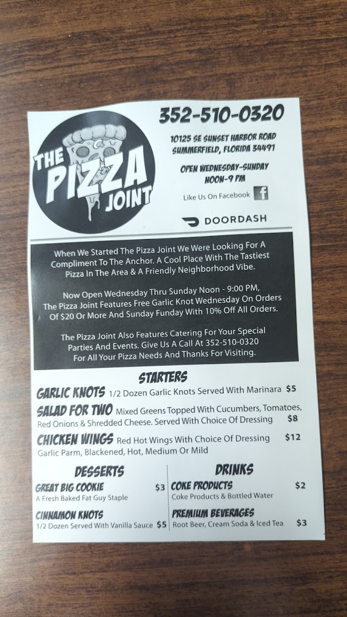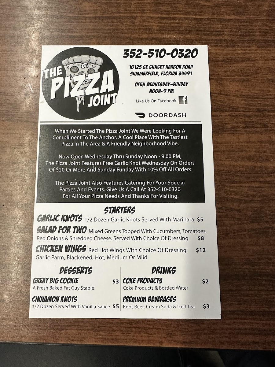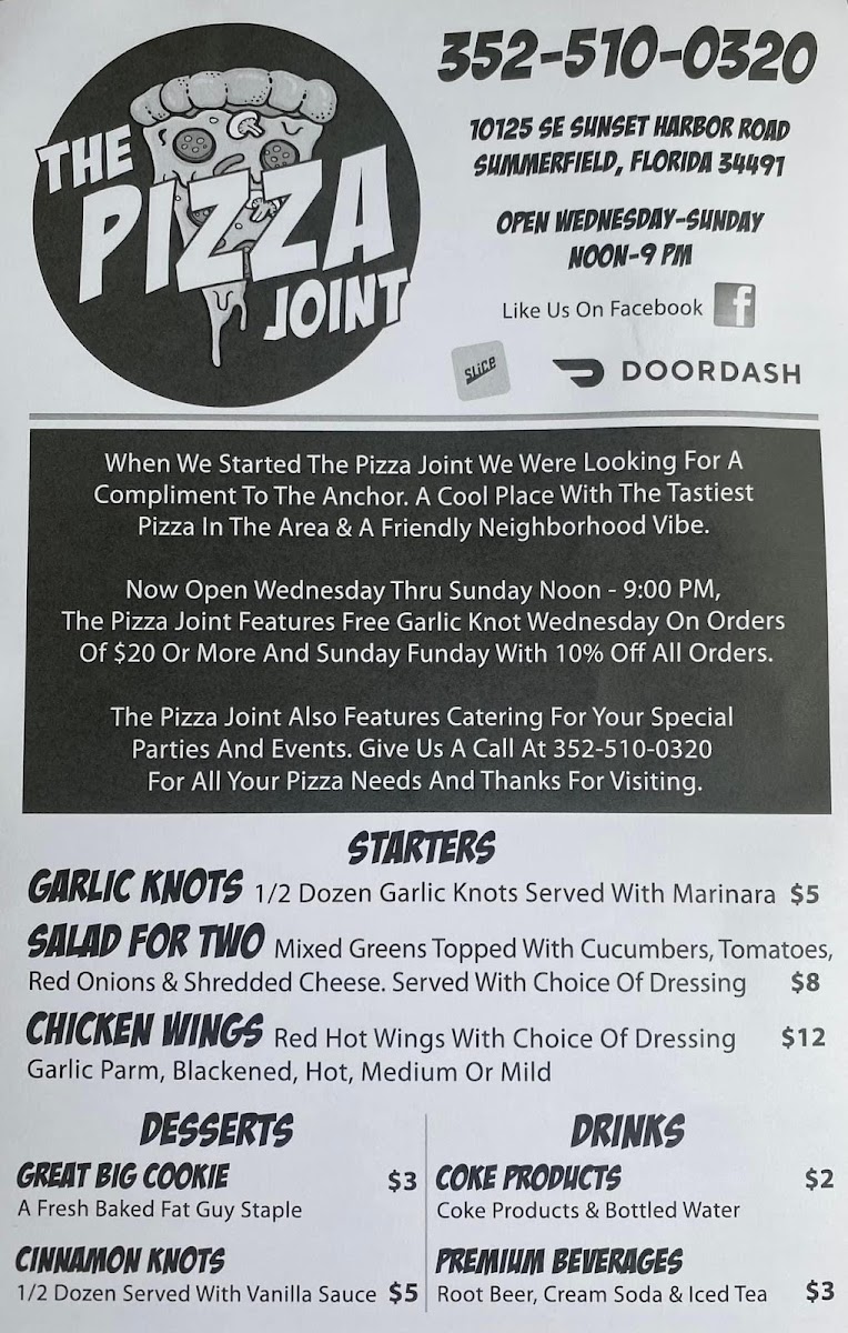 Welcome to The Pizza Joint On Sunset Harbor, a culinary gem nestled in Summerfield, Florida. You can find this vibrant pizzeria at 10125 SE Sunset Harbor Rd, where the aromas of freshly baked pizza and delicious sides greet you as you step inside. Whether you're a local or just passing through, this eatery promises a delightful dining experience that will leave your taste buds dancing.