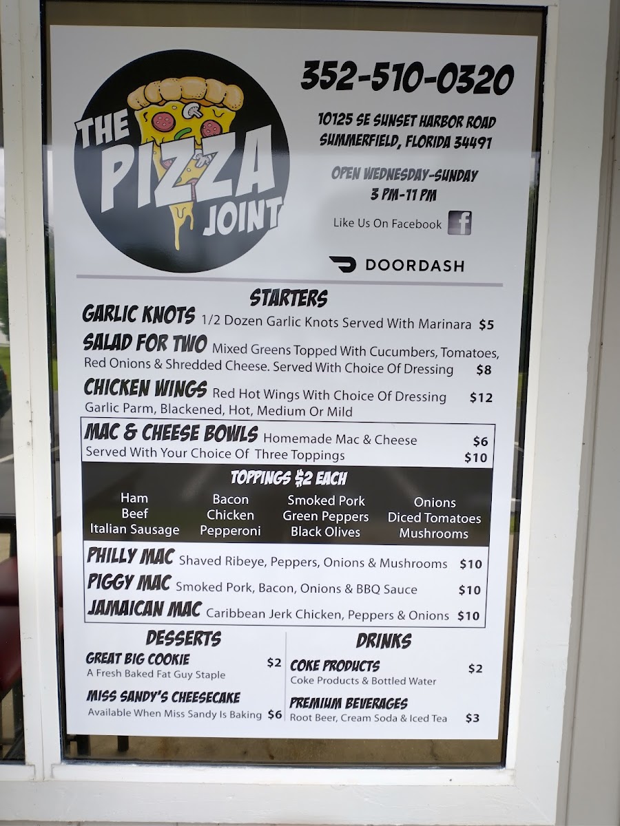 The Pizza Joint On Sunset Harbor, located in Summerfield, FL, is a culinary gem that brings a vibrant twist to traditional pizza. With a diverse menu featuring crowd-pleasers like The Greek Chicken and Buffalo Ranch pizzas, each dish is crafted with fresh ingredients and bold flavors. Customers rave about the garlic knots and unique starters like Jamaican Mac and Philly Mac. The warm atmosphere and attentive service make it a must-visit for pizza lovers and families alike. Whether dining in or taking out, the quality and taste ensure that every visit is a delightful experience worth repeating.